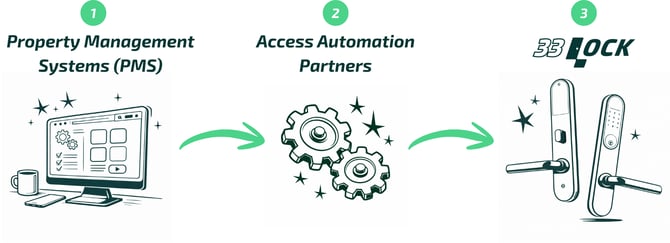 33 Lock works with access control automation partners to help properties fully automate guest access. These partners connect your Property Management System (PMS) to 33 Lock, ensuring access is issued automatically at check-in and removed at check-out—without manual lock programming.